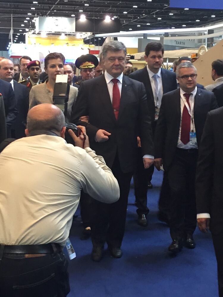 At the show, Poroshenko was said to have met for an hour with the UAE's crown prince Sheikh Mohammed bin Zayed al-Nahyan, and walked the show floor of the show, which was lined with armored vehicles, missiles and automatic weapons from all over the world.
