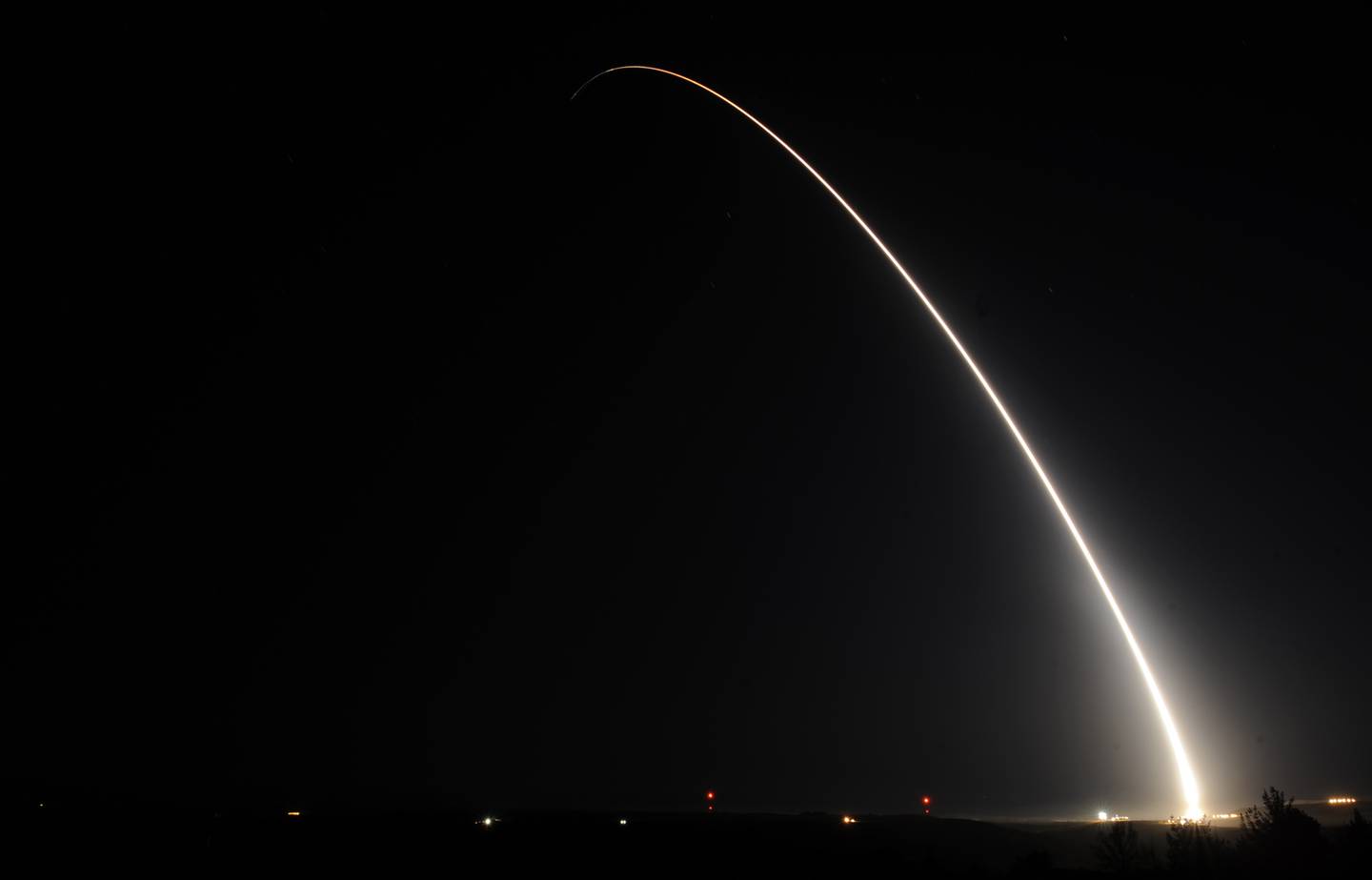 An unarmed Minuteman III intercontinental ballistic missile equipped with a test re-entry vehicle fires on Oct. 21 at Vandenberg Air Force Base, California.