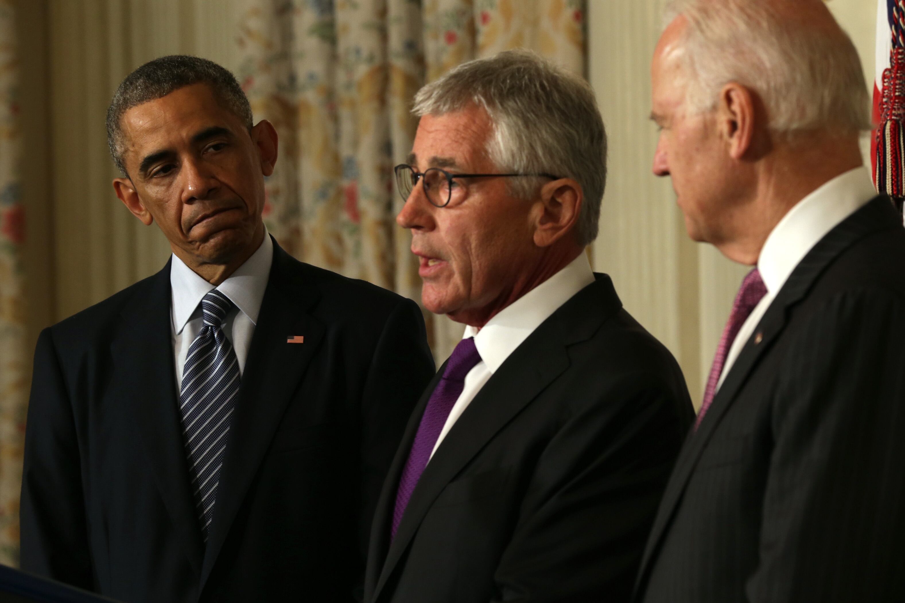 WASHINGTON, DC - NOVEMBER 24: U.S. Secretary of Defense Chuck Hagel (C) speaks as President Barack Obama (L) and Vice President Joe Biden look on during a press conference announcing Hagel's resignation in the State Dining Room of the White House November 24, 2014 in Washington, DC. Sources say Hagel plans to remain in office until his successor is confirmed by the Senate. (Photo by Alex Wong/Getty Images) *** BESTPIX ***People line West Midland St. in Bay City, Mich., for the procession of fallen soldier Army Sgt. 1st Class Michael Cathcart, Monday, Nov. 24, 2014. Cathcart died in Afghanistan, Nov. 14. (AP Photo/The News, Jeff Schrier) LOCAL TELEVISION OUT; LOCAL INTERNET OUT U.S. Marine Lance Cpl. Corey W. Dahmen provides security during non-combatant evacuation operation training aboard Camp Pendleton, Calif., Nov. 19, 2014. Dahmen is a rifleman with Lima Company, Battalion Landing Team 3rd Battalion, 1st Marine Regiment, 15th Marine Expeditionary Unit. The training is designed to improve Marines’ tactics in assisting the Department of State in evacuating U.S. citizens and civilian personnel from foreign nations to an appropriate safe haven. (U.S. Marine Corps photo by Sgt. Emmanuel Ramos/Released)U.S. Airmen assigned to the 107th Airlift Wing, New York Air National Guard support the stockpiling of sandbags at the Erie County Community College in Williamsville, N.Y., Nov. 23, 2014. The Airmen assisted with the palletization, loading and onward movement of the sandbags destined for response efforts in Western New York. New York Gov. Andrew Cuomo directed the mobilization of more than 500 National Guard Soldiers, Sailors and Airmen from area units to assist local authorities with snow removal and traffic control as regions of western New York saw more than six feet of snowfall in just 72 hours. (U.S. National Guard photo by Lt. Col. James Freehart/Released)141120-N-CU914-069