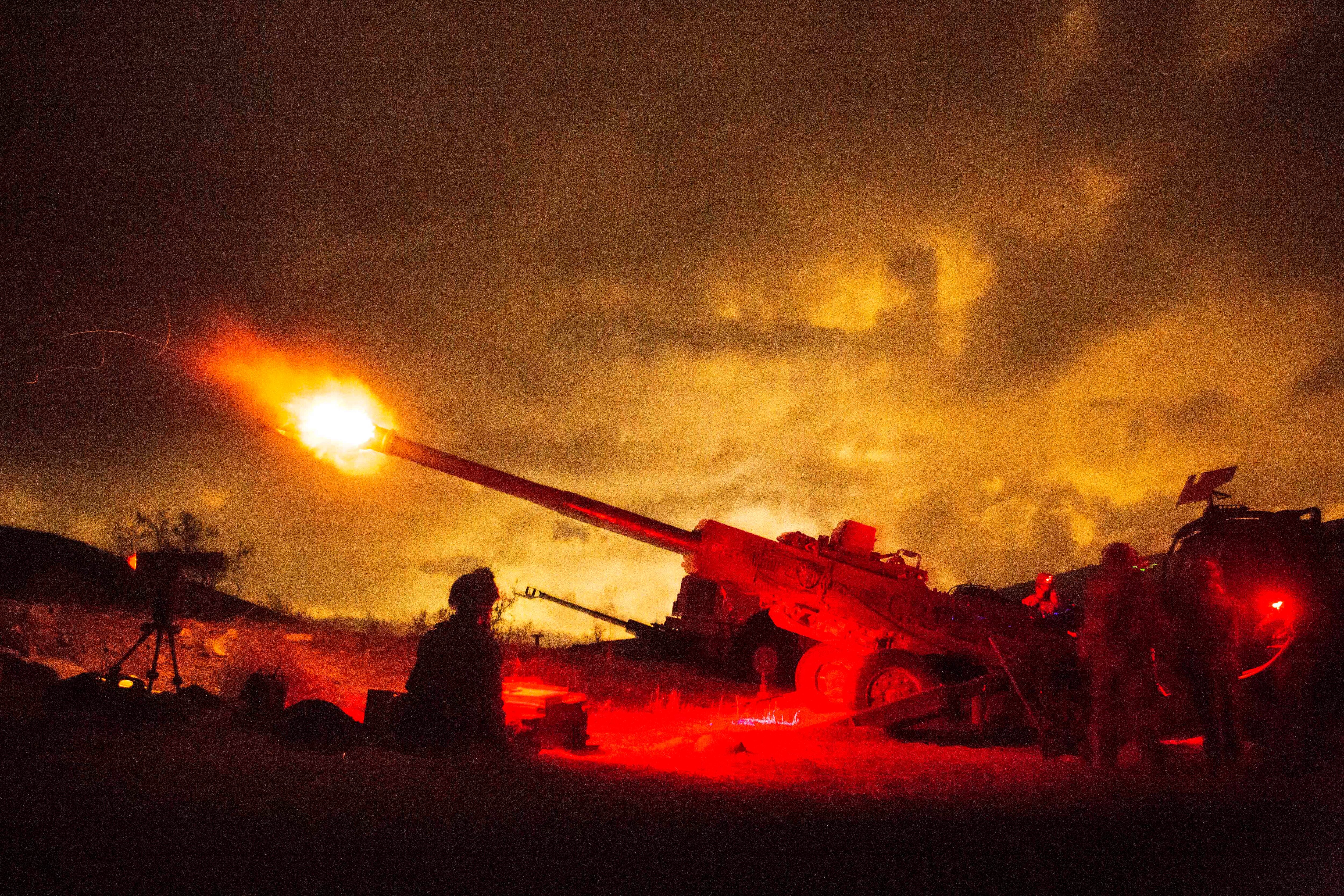 ARABIAN GULF (Nov. 20, 2014) A Military Sealift Command contracted SA-330J Puma helicopter hooks a load of cargo from the Military Sealift Command dry cargo and ammunition ship USNS Charles Drew (T-AKE 10) to deliver to the amphibious dock landing ship USS Comstock (LSD 45), not shown, during an underway replenishment-at-sea. Comstock is part of the Makin Island Amphibious Ready Group and, with the 11th Marine Expeditionary Unit, is deployed in support of maritime and theater security cooperation in the U.S. 5th Fleet area of responsibility. (U.S. Navy photo by Mass Communication Specialist 3rd Class Lenny LaCrosse/Released)A U.S. Army Special Forces Soldier flies into Clemson University's Memorial Stadium with the national colors and the game ball during opening ceremonies for the Clemson versus Georgia State game Nov. 22, 2014. The game was part of Clemson's annual Military Appreciation day which included non-stop honors and recognition for veterans and active military service members. (Photo by U.S. Army Sgt. Ken Scar)U.S. Marines with India Battery, Battalion Landing Team 3rd Battalion, 1st Marine Regiment, 15th Marine Expeditionary Unit, carry out a fire mission during MEU Exercise 14 aboard Camp Pendleton, Calif., Nov. 20, 2014. The purpose of MEUEX is to train the different elements of the 15th MEU to work together to complete a wide variety of missions. (U.S. Marine Corps photo by Sgt. Jamean R. Berry/Released)Builder Constructionman Brandon Schwing from Naval Mobile Construction Battalion (NMCB) 3 levels the concrete at the Seabee Museum, Wednesday, Nov. 20. Fourteen Seabees spent four days laying 20-cubic feet of concrete for the museum. (U.S. Navy photo by Mass Communication Specialist 3rd Class Debra Daco/RELEASED).Cadets take the field prior to the start of a NCAA college football game between Army and Fordham on Saturday, Nov. 22, 2014, in West Point, N.Y. (AP Photo/Hans Pennink)141121-N-ZZ999-005