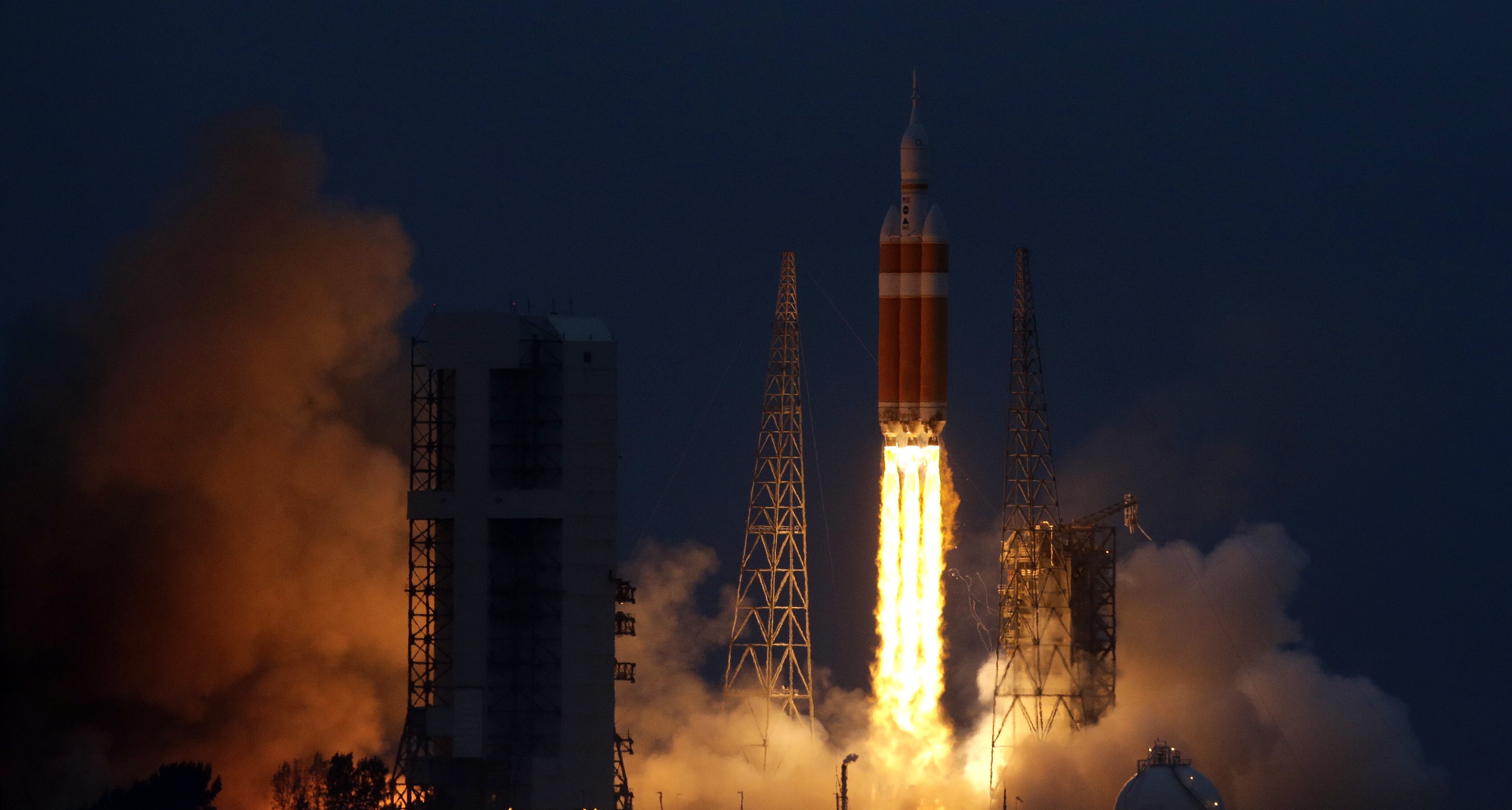 NASA's Orion spacecraft, atop a United Launch Alliance Delta 4-Heavy rocket, lifts off on its first unmanned orbital test flight from the Cape Canaveral Air Force Station Friday, Dec. 5, 2014, in Cape Canaveral, Fla. (AP Photo/Chris O'Meara) In this photo provided by NASA,the United Launch Alliance Delta 4-Heavy rocket, with NASAs Orion spacecraft mounted atop, lifts off from the Cape Canaveral Air Force Station Friday, Dec. 5, 2014, in Cape Canaveral, Fla. (AP Photo/NASA, Bill Ingalls)This photo provided by NASA-TV, shows the view from the Orion spacecraft atop a United Launch Alliance Delta 4-Heavy rocket as it climbs to orbit during the first test flight Friday Dec. 5, 2014. (AP Photo/NASA-TV)In this frame grab from NASA-TV, the Orion spacecraft descends before splashing down in the Pacific Ocean, Friday, Dec. 5, 2014, following a dramatic test flight that took it to a zenith height of 3,600 miles and ushered in a new era of human exploration aiming for Mars. (AP Photo/NASA)In this frame grab from NASA-TV, the Orion capsule floats after splashing down in the Pacific Ocean, Friday, Dec. 5, 2014, following a dramatic test flight that took it to a zenith height of 3,600 miles and ushered in a new era of human exploration aiming for Mars. (AP Photo/NASA)