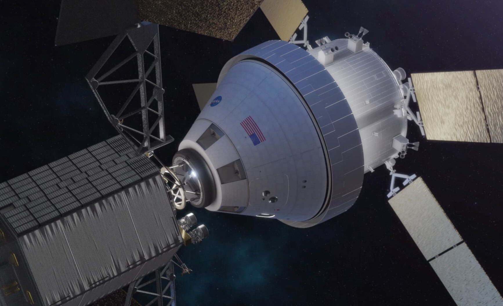 NASA’s Orion spacecraft mounted atop a United Launch Alliance Delta IV Heavy rocket is visible inside the Mobile Service Tower where the vehicle is undergoing launch preparations, Wednesday, Dec. 3, 2014, Cape Canaveral Air Force Station's Space Launch Complex 37, Florida. Orion is NASA’s new spacecraft built to carry humans, designed to allow us to journey to destinations never before visited by humans, including an asteroid and Mars. Photo credit: (NASA/Bill Ingalls)The United Launch Alliance Delta IV Heavy rocket with NASA’s Orion spacecraft mounted atop, lifts off from Cape Canaveral Air Force Station's Space Launch Complex 37 at at 7:05 a.m. EST, Friday, Dec. 5, 2014, in Florida. The Orion spacecraft orbited Earth twice, reaching an altitude of approximately 3,600 miles above Earth before landing in the Pacific Ocean. No one was aboard Orion for this flight test, but the spacecraft is designed to allow us to journey to destinations never before visited by humans, including an asteroid and Mars. Photo credit: (NASA/Bill Ingalls)In this concept image, the Orion spacecraft docks with the robotic asteroid redirect vehicle.