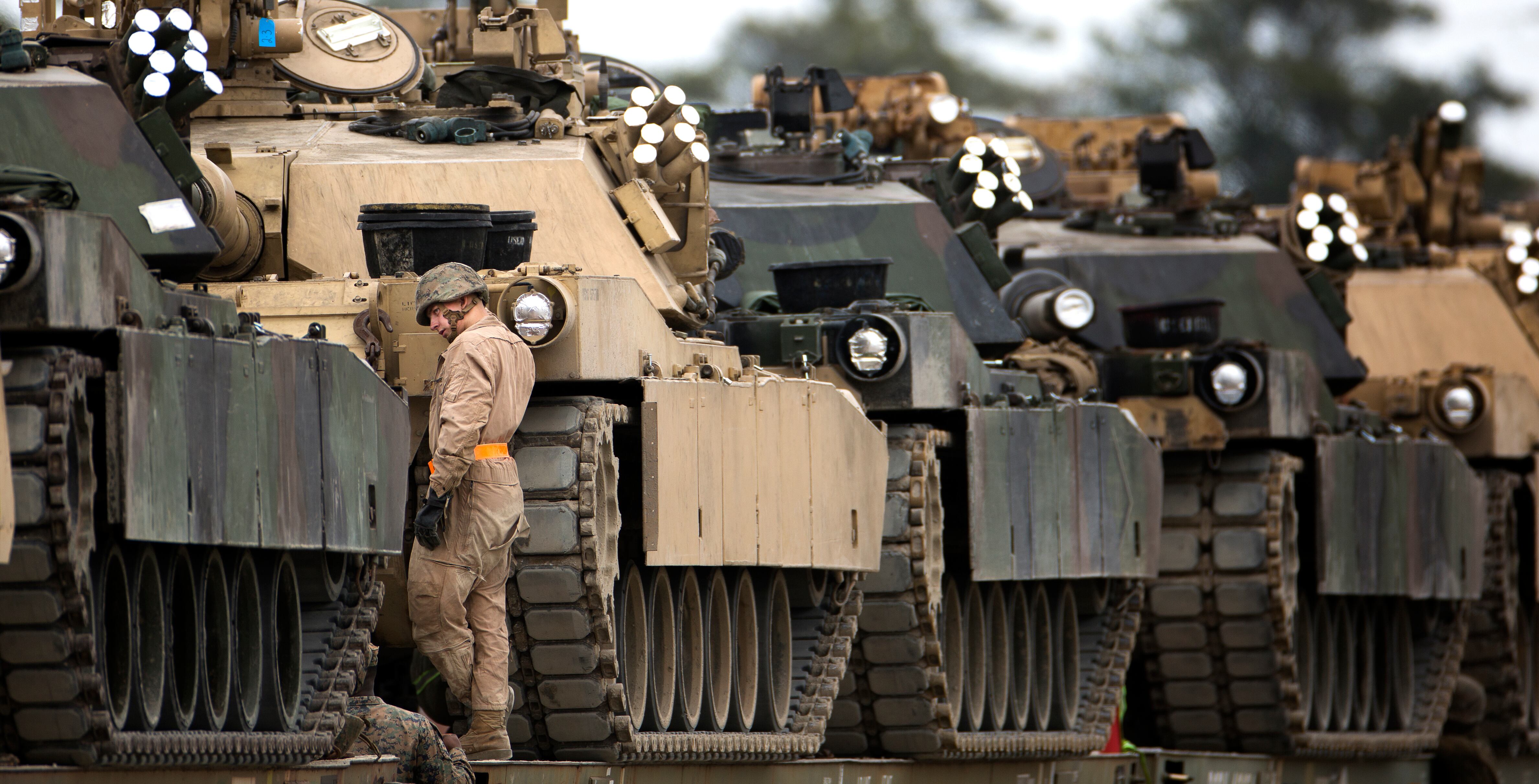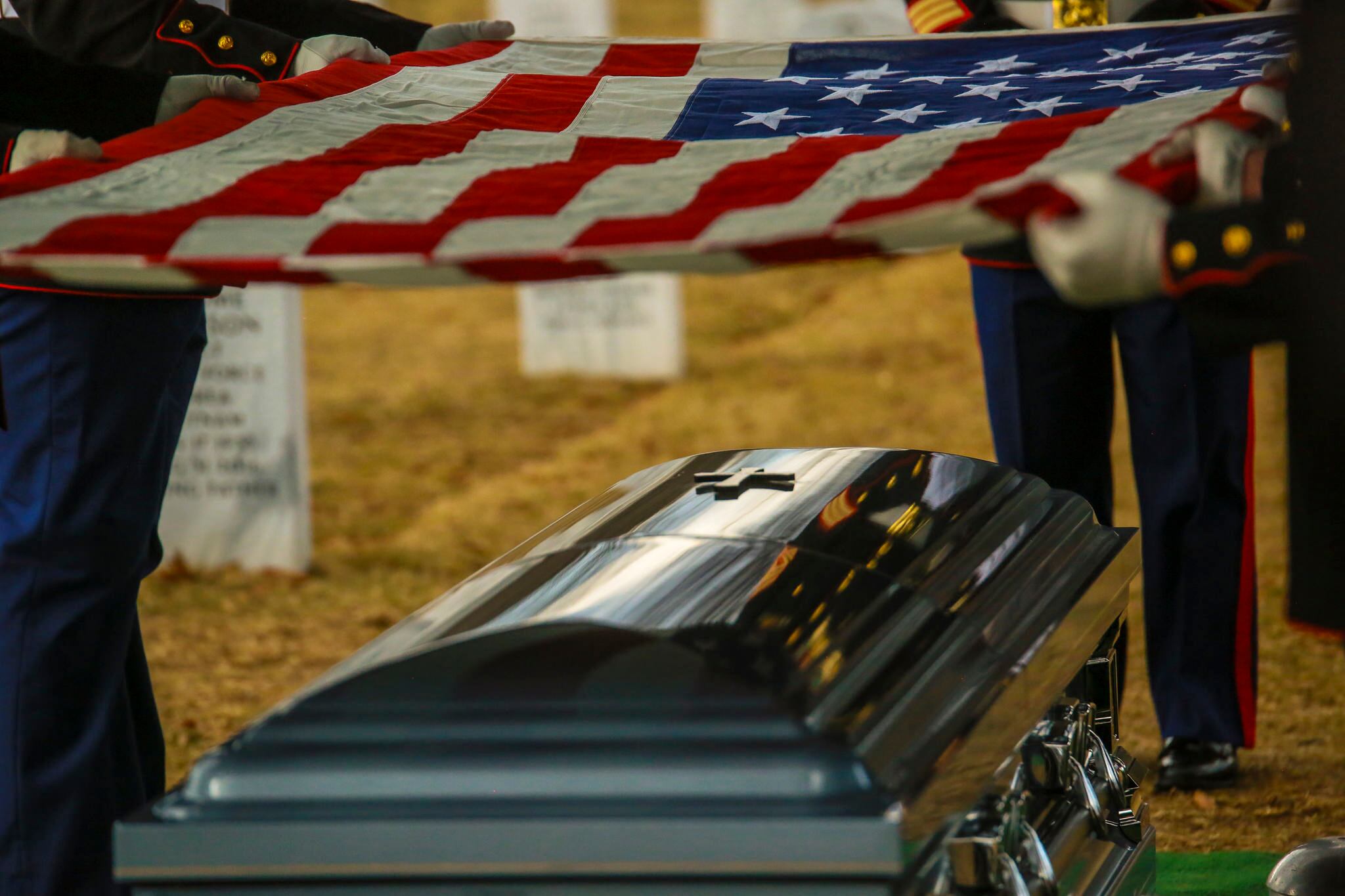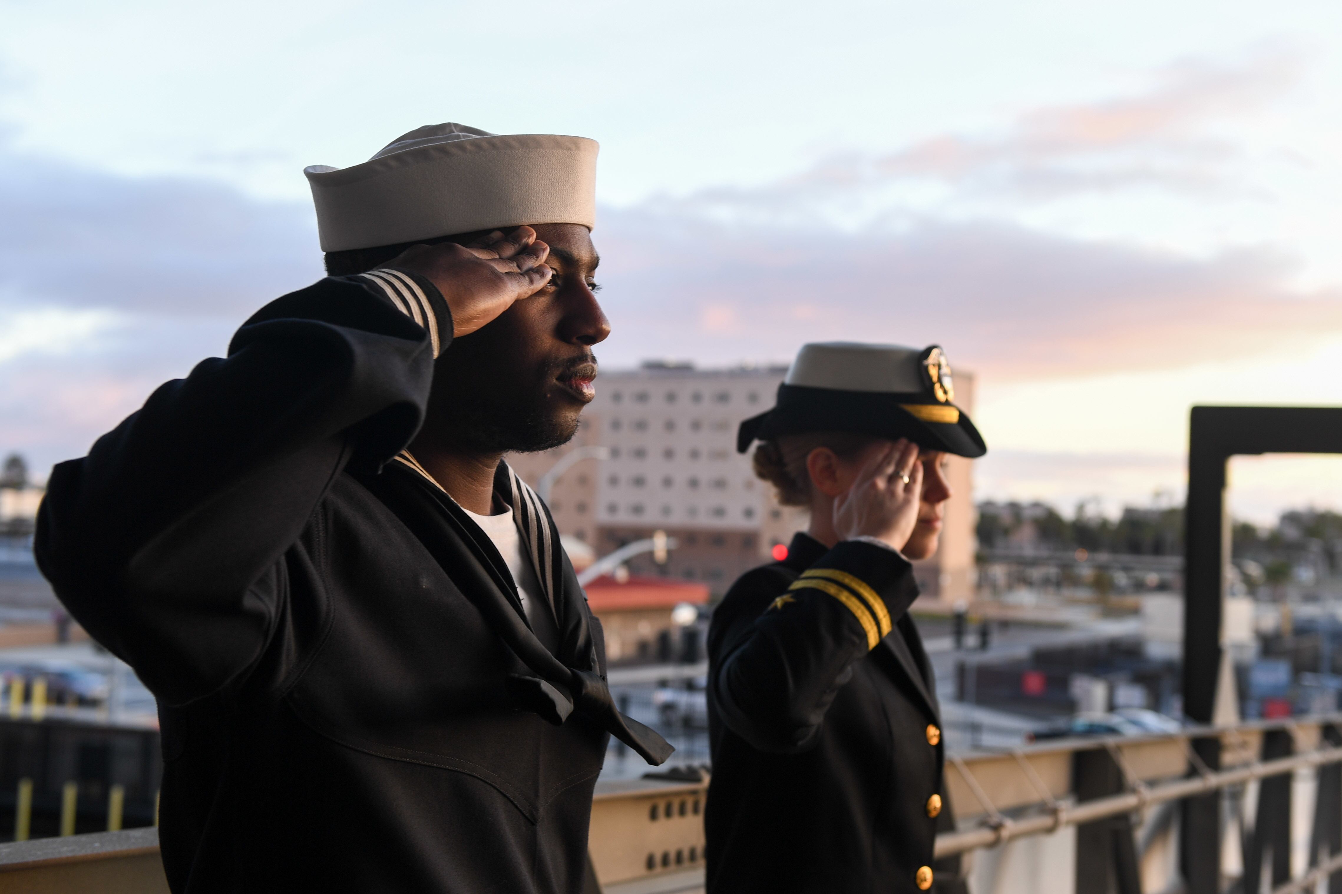 Marines with 2nd Tank Battalion, 2nd Marine Division secure M1A1 battle tanks to train cars for transport to Fort Stewart, Ga., for a training exercise Jan. 22, 2018 on Marine Corps Base Camp Lejeune, N.C. (U.S. Marine Corps photo by Sgt. Matthew Callahan)A rare super blue blood moon sets in the western sky this morning at Will Rogers Air National Guard Base in Oklahoma City, Jan. 31, 2018. This lunar event hasn't happened since 1866. (Staff Sgt. Tyler Woodward/Air National Guard)Blue Angels Diamond pilots perform the Diamond Echelon Parade during a winter training flight over El Centro, California. (Mass Communication Specialist 1st Class Ian Cotter/Navy)Marine Corps Body Bearers, Bravo Company, Marine Barracks Washington D.C., fold the national ensign during a funeral for retired Master Sgt. Catherine G. Murray at Arlington National Cemetery, Arlington, Va., Jan. 23, 2018. Murray was the first enlisted female Marine to retire from active duty after serving honorably for nearly 20 years. (Lance Cpl. Damon Mclean/Marine Corps)A Coast Guard HC-130 Hercules airplane gets rinsed down at Air Station Barbers Point, Jan. 24, 2018. Crewmembers maintain operational readiness by washing the plane after every flight to protect it and remove any salt. (Chief Petty Officer Brandon Kelly/Coast Guard)Aviation Boatswain's Mate (Handling) Airman Willie Reed Jr., from Memphis, Tennessee, and Lt. Becca Tucker, from Oregon City, Oregon, render honors while standing quarterdeck watch during evening colors aboard USS John C. Stennis (CVN 74). (U.S. Navy photo by Mass Communication Specialist 3rd Class Cole C. Pielop)