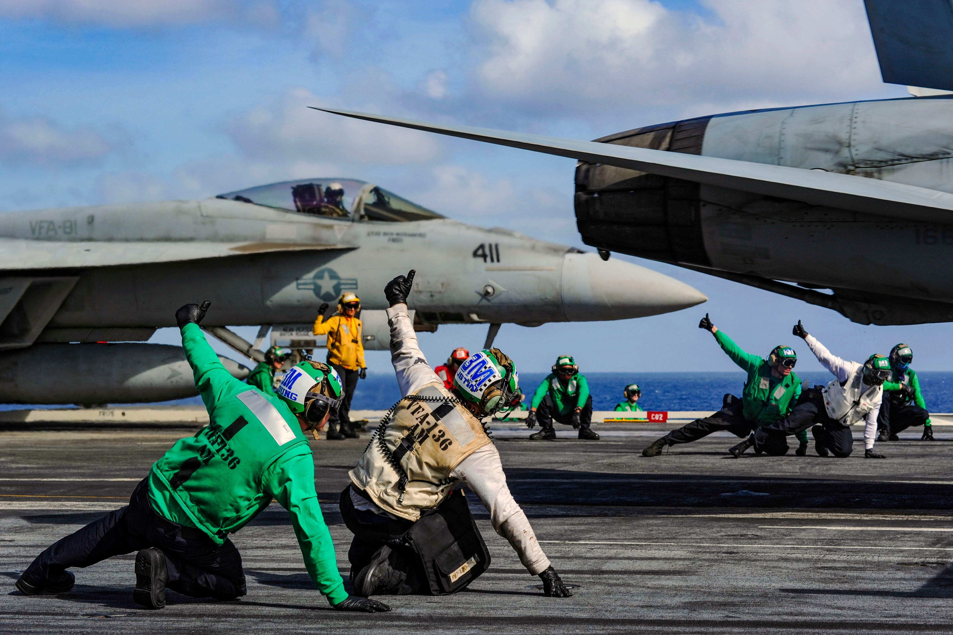 U.S. Navy Hospitalman Jacob Adam drinks Cobra blood at jungle survival training during Exercise Cobra Gold 2018, at Camp Ban Chen Khrem in the Kingdom of Thailand, Feb. 17, 2018. Cobra Gold 18 is an annual exercise conducted in the Kingdom of Thailand from Feb. 13-23 with seven full participating nations. Adam, a San Clemente, California native, is a Corpsman with Lima Company, 3rd Battalion, 3rd Marine Regiment, 3rd Marine Division. The Hawaii-based battalion is forward-deployed to Okinawa, Japan part of the unit deployment program. (Sgt. Ricky Gomez/Marines)Sailors signal for the launch of an F/A-18E Super Hornet assigned to the "Knighthawks" of Strike Fighter Squadron (VFA) 136 from the flight deck aboard the aircraft carrier USS Harry S. Truman (CVN 75). Truman is underway for composite training unit exercise (COMPTUEX), which evaluates the strike group's ability as a whole to carry out sustained combat operations from the sea, ultimately certifying the Harry S. Truman Carrier Strike Group for deployment. (MC3 Kaysee Lohmann/Navy)U.S. Marine Corps Lance Cpl. Kwan Walker, a networking administrator assigned to Marine Wing Communication Squadron 28, braces in the cold during a conditioning hike during exercise Ullr Shield at Fort McCoy, Wisconsin, Jan. 13, 2018. Ullr Shield is a training exercise designed to improve the 2nd Marine Aircraft Wing’s capabilities in extreme cold weather environments. (Lance Cpl. Cody Rowe/Marines)As former teammates of Navy Lt. Steven Combs ski through the gates in total silence, the only sound the crowd gathered below could hear was the swishing of skis through snow on Wednesday, Feb. 14, 2018. The former racers, coaches, friends, and family of the late Lt. Combs, along with current high school ski racers, gathered at Bousquet Ski Area in Pittsfield to pay tribute to the navy pilot who was killed in a crash on the Philippine Sea on Nov. 22, 2017. (Stephanie Zollshan/The Berkshire Eagle via AP)Yeoman 3rd Class Alexis King shoots a bow during archery training prior to the Team Navy trials at Naval Station Mayport’s fitness center in preparation for the 2018 Department of Defense Warrior games. Navy Wounded Warrior-Safe Harbor and NAVSTA Mayport are hosting the trials, in which athletes will qualify in eight adaptive sports: archery, track and field, cycling, wheelchair basketball, shooting, sitting volleyball, and swimming. The top performing athletes will fill 40 competitive spots and five alternative spots for Team Navy at the 2018 Department of Defense Warrior Games. (MC2 Michael Lopez/Navy)A United States Air Force F-15 fighter jet based at RAF Lakenheath speeds through the Dinas Pass, known in the aviation world as the Mach Loop on February 16, 2018 in Dolgellau, Wales. United Kingdom. The Royal Air Force and aircraft of the United States use the valleys of Snowdonia to practice low flying techniques and pilot training. The mountain peak vantage points attract aviation enthusiasts from all over the world who hope for a glimpse of their favorite military aircraft spending days waiting for the un-published and un-scheduled fly pasts. (Christopher Furlong/Getty Images)Four U.S. Air Force F-16C Fighting Falcons and four Swedish Air Force JAS 39 Gripens fly in formation during aerial refueling training in Swedish airspace, Feb. 8, 2018. The air refueling training is in conjunction with a rotational deployment of F-16Cs from the Ohio Air National GuardÕs 180th Fighter Wing to Amari Air Base, Estonia, as part of a Theater Security Package. The training allows the U.S. and Sweden to strengthen interoperability and increase readiness. (A1C Luke Milano/Air Force)U.S., Thai and Republic of Korea Marines conduct jumping competitions between helocast training runs during Exercise Cobra Gold 2018 in Sattahip, Chonburi province, Kingdom of Thailand, Feb. 12, 2018. Helocasting is a method of inserting reconnaissance and surveillance teams in support of small boat operations. This training provided a venue for both United States and partner nations to advance interoperability and increase partner capacity in planning and executing complex and realistic multinational force and combined task force operations. Cobra Gold 18 is an annual exercise conducted in the Kingdom of Thailand held from Feb. 13-23 with seven full participating nations. (UCpl. Breanna L. Weisenberger/Marines)ROTC Cadet Danielle Dias, a James Madison University sophomore, swims 15 meters with a weapon and being weighted down by Army gear bags during the Combat Water Survival Test at the pool on JMU campus in Harrisonburg, Va., Wednesday, Feb. 14, 2018. (Nikki Fox/Daily News-Record via AP)U.S. Navy sailors are silhouetted aboard the USS Carl Vinson aircraft carrier anchors off Manila, Philippines, for a five-day port call along with guided-missile destroyer USS Michael Murphy, Saturday, Feb. 17, 2018. Lt. Cmdr. Tim Hawkins told The Associated Press that American forces will continue to patrol the South China Sea wherever international law allows when asked if China's newly built islands could restrain them in the disputed waters. (Bullit Marquez/AP)The U.S. Air Force Thunderbirds perform a flyover during the national anthem before the NASCAR Daytona 500 auto race at Daytona International Speedway Sunday, Feb. 18, 2018, in Daytona Beach, Fla. (Phelan M. Ebenhack/AP Photo)In this Wednesday, Feb. 14, 2018, photo, the remains of WW II and Korean War Army veteran Alfred Bensinger Jr. are unloaded off of a Delta Airlines plane at Will Rogers World Airport in Oklahoma City, Okla. The remains of the soldier from Oklahoma City were returned to his home state nearly 70 years after he was taken prisoner during the Korean War. (Chris Landsberger/The Oklahoman via AP)