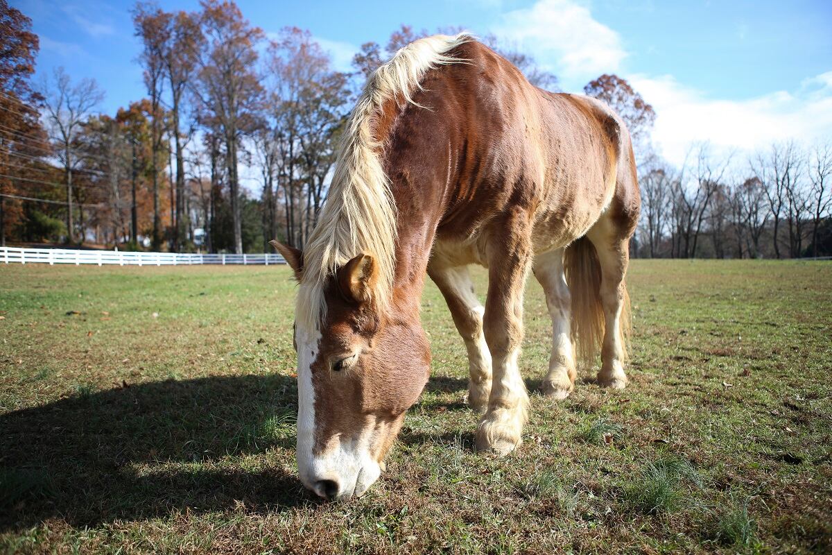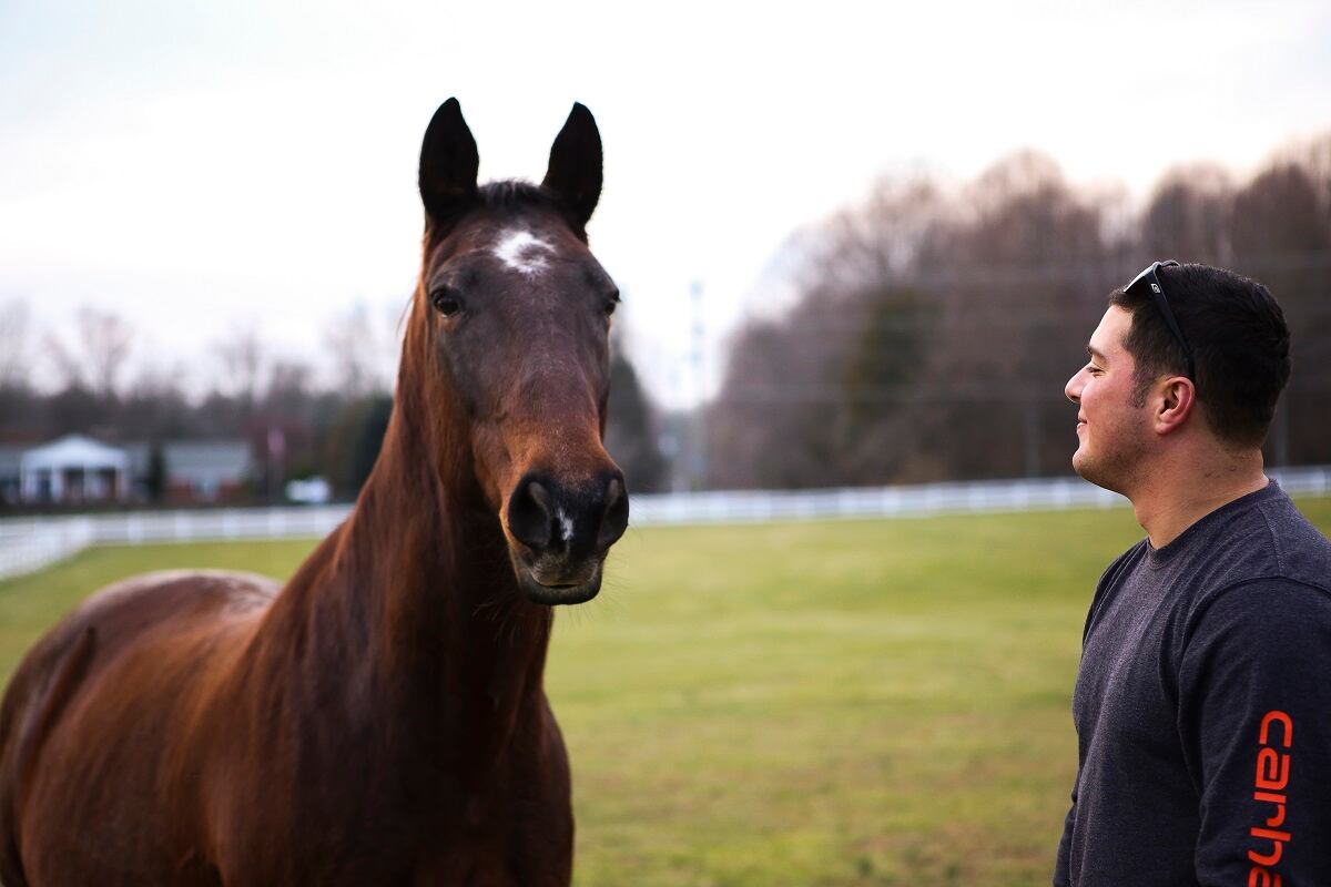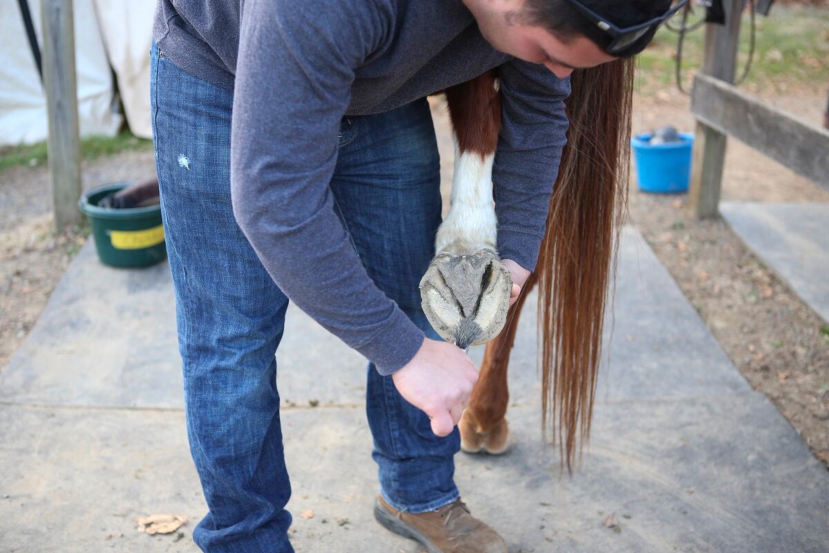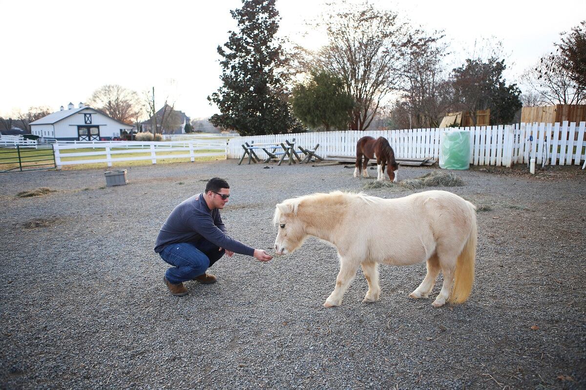 As one of the most gentle and sweet horses on the farm, Lizzy is a star at the Northern Virginia Therapeutic Riding Program in Clifton, Virginia, even though she just moved here in 2017. Her larger Haflinger/draft frame makes her an ideal horse for military riders. (Andrea Scott/Staff)Jimmy Fierro is a helicopter crew chief in the U.S. Army. He spends his week maintaining and flying on Black Hawk helicopters out of Fort Belvoir, Virginia, but he spends his Sundays volunteering at the riding program. One of his favorite horses is Teddy, the mini horse. “He’s like a cat,” Fierro says. “You just got to get him to come to you.” (Andrea Scott/Staff)Prince cheeses for the camera one late December 2017 afternoon. He is 22 years old and normally works with children with disabilities, which is a focus of the facility. But he’s also great with veteran riders. Every therapist picks a horse for each client based on the personality and needs of the rider. (Andrea Scott/Staff)Tessa Hassett has been an instructor at NVTRP for three years. She first became involved when her younger sister came to the program for therapeutic riding in 2002. (Andrea Scott/Staff)Loki is the most comfortable in front of the camera, his handlers say. He was out grazing in the back pasture when Fierro came to say goodbye for the evening. (Andrea Scott/Staff)The Northern Virginia Therapeutic Riding Program has more than 200 volunteers on its roster. Volunteers perform duties like combing horses and cleaning hooves, as Fierro does here. Volunteers make the program work, employees say. (Andrea Scott/Staff)Lizzy stands watch over the pastures as the end of a long weekend. Saturdays and Sundays are the busiest days at the stable, jam-packed full of riders all day. Winter may be here, but the horses at NVTRP ride outdoors year-round. (Andrea Scott/Staff)