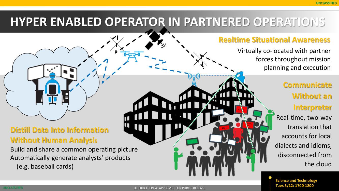 To achieve the cognitive overmatch leaders want, the Hyper Enabled Operator needs analysis in near-real time, applied to their unique situation, and presented in an easily digestible format.