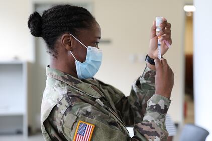 Defense Secretary Lloyd Austin issued a memorandum in August directing mandatory COVID-19 vaccinations for service members, including those on active duty, in the National Guard and in a Reserve unit. Those exempt, according to the memo and Pentagon press secretary John Kirby, include those actively participating in COVID-19 clinical trials and those with preexisting conditions who are advised against being vaccinated by their doctors. Kirby also said there be be exemptions on religious grounds. (Sgt. Leona C. Hendrickson/Army National Guard)