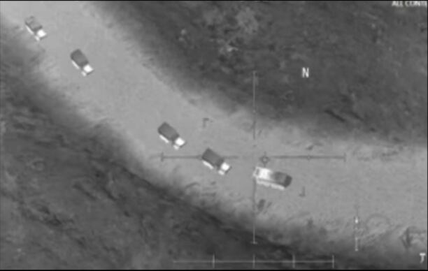 Several other pictures posted as evidence by the Russian MOD were taken from old screenshots of Iraqi and coalition forces destroying ISIS convoys in Fallujah, Iraq. In June, Iraqi and coalition forces decimated a convoy of nearly 700 ISIS vehicles as the militants attempted to flee Falujah.