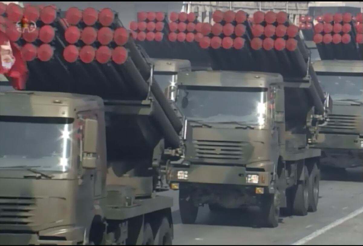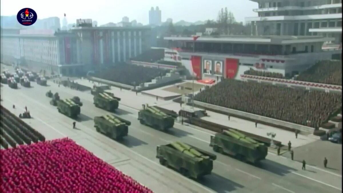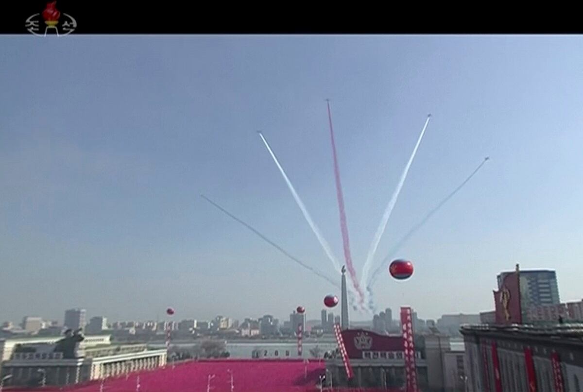 North Korean leader Kim Jong Un, right, and his wife Ri Sol Ju arrive at a military parade in Pyongyang on Feb. 8, 2018. The North held the parade a day before South Korea hosts the opening ceremony for the Winter Olympics in Pyeongchang. (Korean Central Television via AP)Military tanks are seen during a parade in Pyongyang, North Korea, on Feb. 8, 2018, just one day before South Korea hosts the Winter Olympics. (Korean Central Television via AP)Jets release colored smoke during a military parade in Pyongyang, North Korea, on Feb. 8, 2018. North Korea held a massive military parade highlighted by intercontinental ballistic missiles. (Korean Central Television via AP)North Korea shows off its multiple launch rocket systems (theM1985 and M1991 are produced by the country). (Korean Central Television)Hwasong-12 and Hwasong-14 missiles are displayed during a military parade held in Pyongyang, North Korea, on Feb. 8, 2018. North Korea held a parade highlighted by intercontinental ballistic missiles one day before South Korea hosts the opening ceremony of the Winter Olympics. (Korean Central Television via AP)North Korea held a military parade highlighted by ICBMs in its capital on Feb. 8, 2018. (Korean Central Television via AP Video)North Korea held the parade a day before South Korea hosts the opening ceremony for the Winter Olympics in Pyeongchang. (Korean Central Television)North Korea paraded its military arsenal through its capital in celebration of the 70th anniversary of the founding of the Korean People’s Army. (Korean Central Television)North Korean leader Kim Jong Un, in black, attends a military parade in Pyongyang, North Korea, on Feb. 8, 2018. (Korean Central Television via AP)