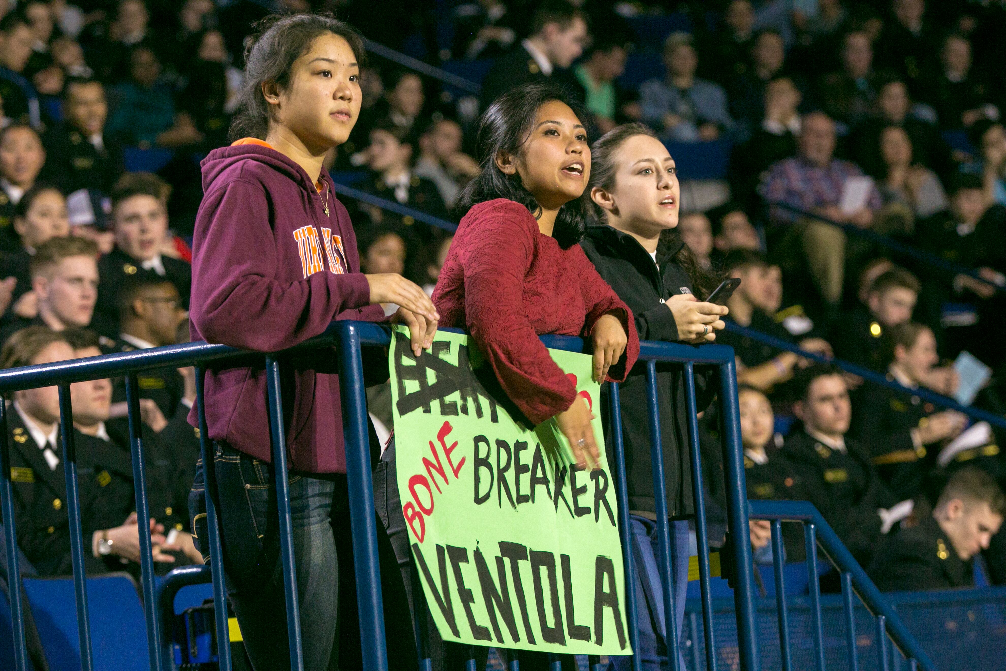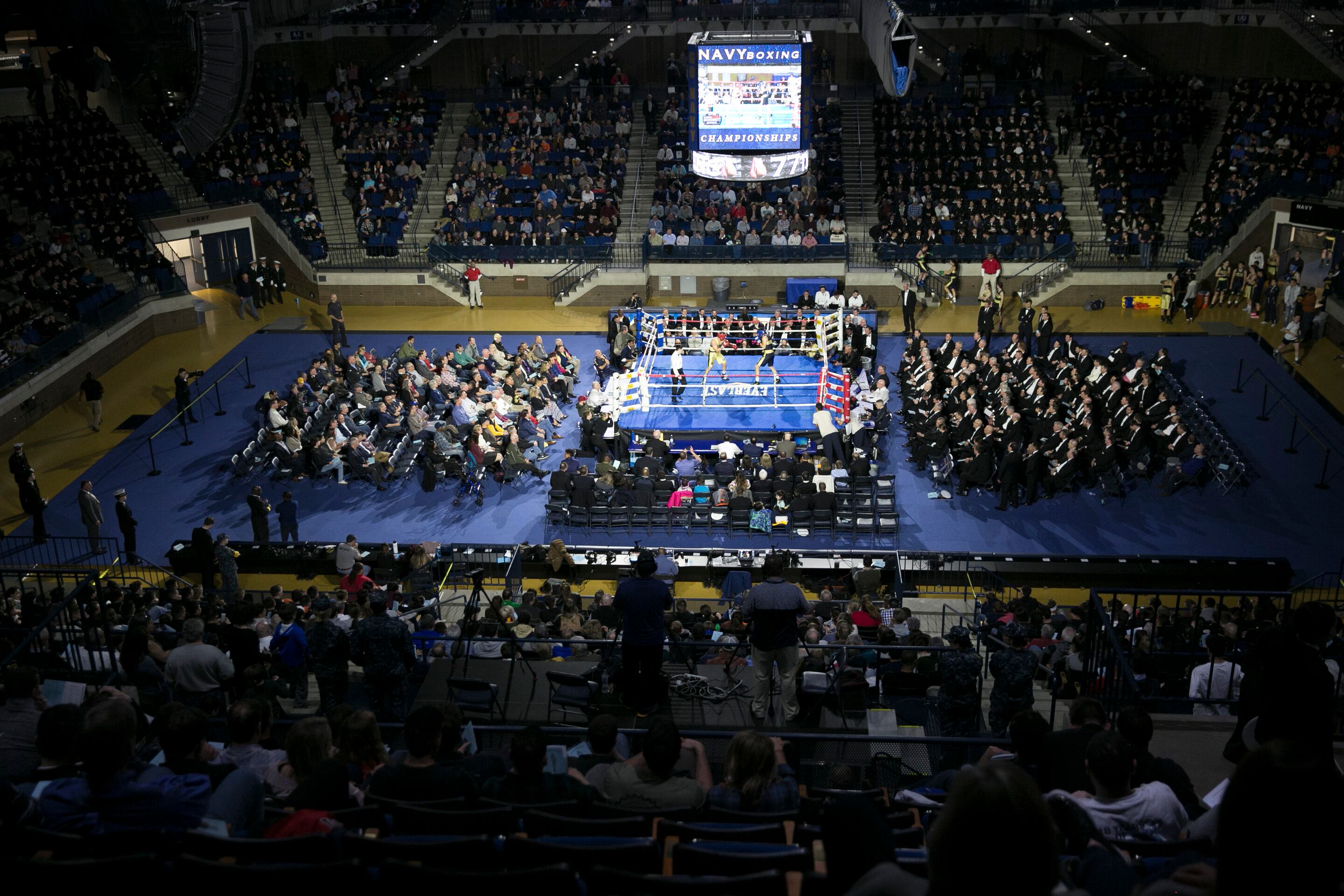 Fans cheer during the United States Naval Academy's 77th Brigade Boxing Championships held on Feb. 23, 2018. Patterson won the fight. (Alan Lessig/Staff)