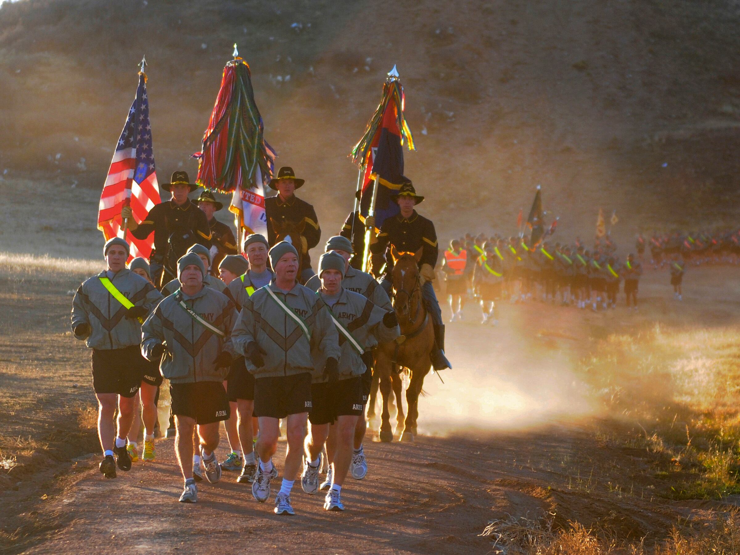Maj. Gen. David Perkins, division commander, 4th Infantry Division, leads the division run at Fort Carson in April 2010. (Staff Sgt. Craig Cantrell/Army)From left to right: USMA Cadet Chad Perkins, Mrs. Ginger Perkins, 1st Lt. Cassandra Perkins, and Maj. Gen. David Perkins, following 1st Lt. Perkins graduation from flight school at Fort Rucker in 2009.