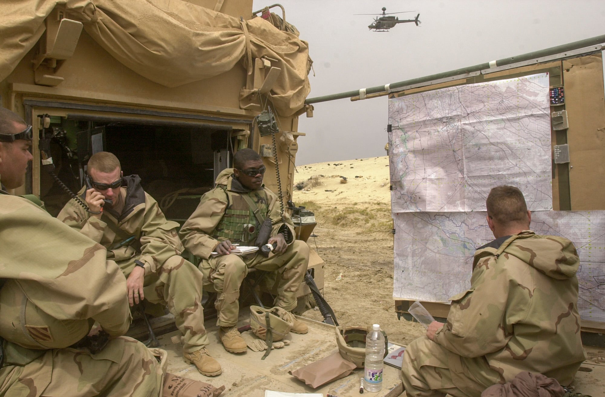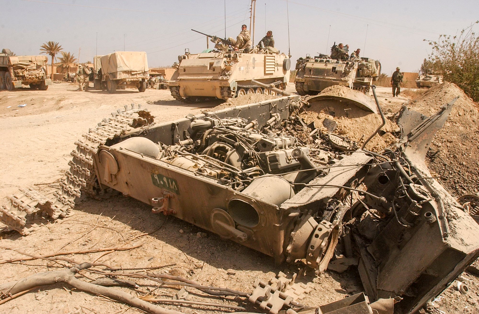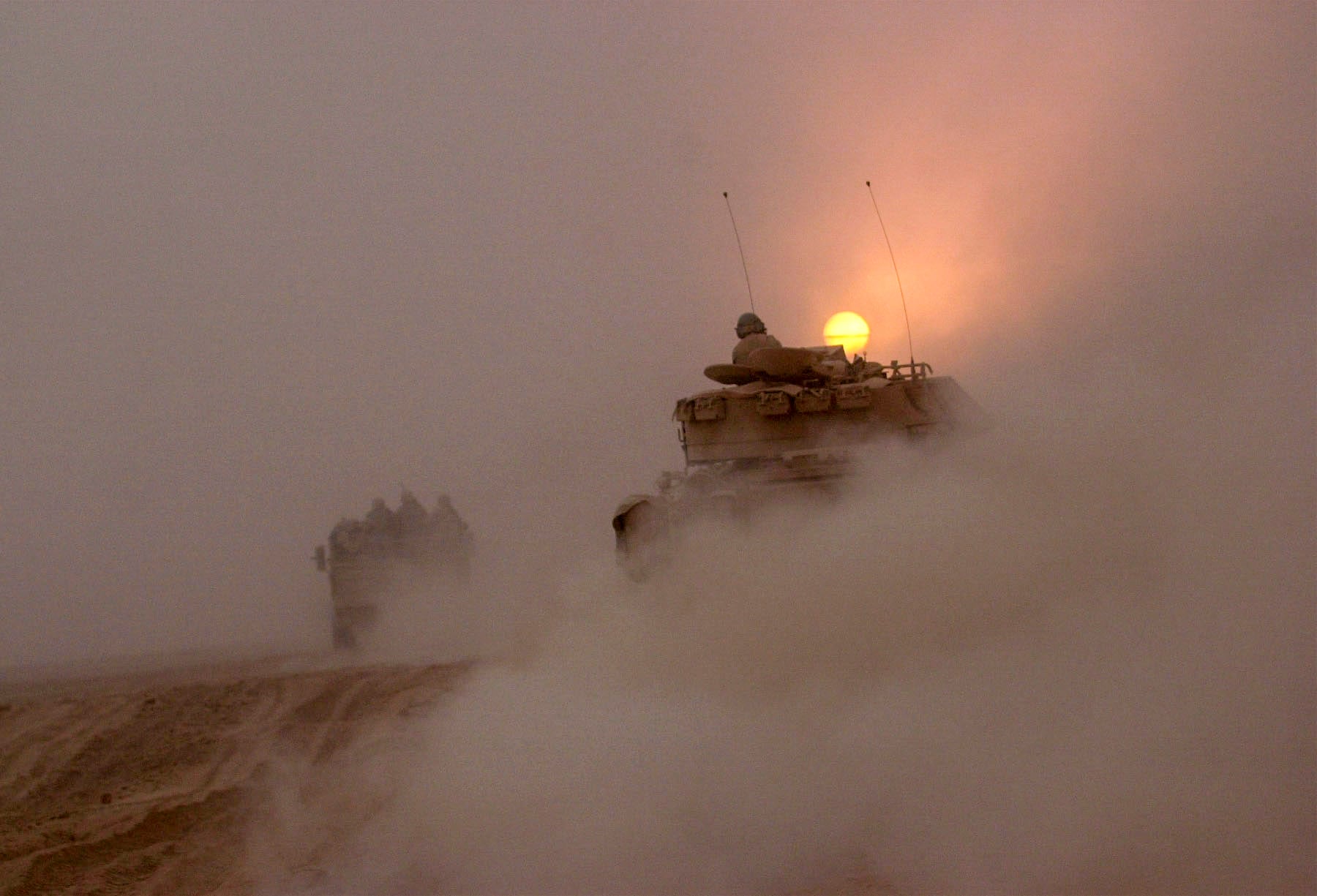 (Alan Lessig/Air Force Times)Troops from the U.S. Army's 3rd Squadron, 7th Cavalry Regiment watch as a target inside the village of As Samawah, Iraq goes up in flames. The Cavalry is in the process of taking the village and is receiving some resistance from fighters inside. (Warren Zinn/Army Times)Troops from the U.S. Army's 3rd Squadron, 7th Cavalry Regiment on the move during invasion of Iraq on April 2, 2003. (Warren Zinn/Army Times)Staff Sgt. Todd Morton, 27, from Cohoes, NY, looks through documents and maps found after 2nd platoon, bravo company, 3rd Battalion, 2nd Brigade, 101st Airborne Divison (Air Assault) occupied a hastily abandoned residence during the Brigade's southern movement toward the city of An Najaf, Wednesday, 4/2/03.