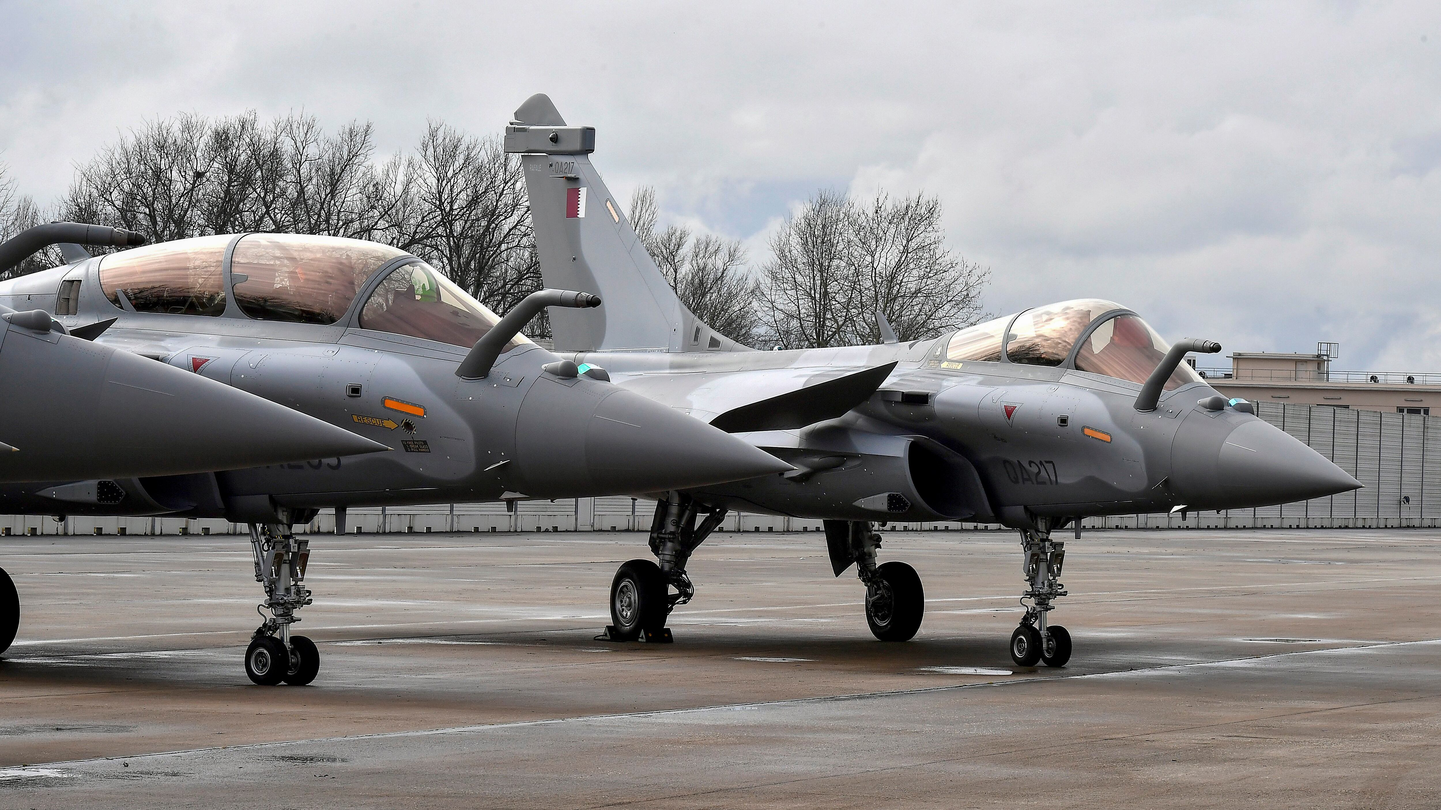 A picture shows a Rafale with Qatar's colors during a ceremony for the delivery to Qatar of the first of 36 Rafale multi-purpose jet fighters from French manufacturer Dassault, on February 6, 2019, in Merignac, southwestern France. - (GEORGES GOBET/AFP/Getty Images)