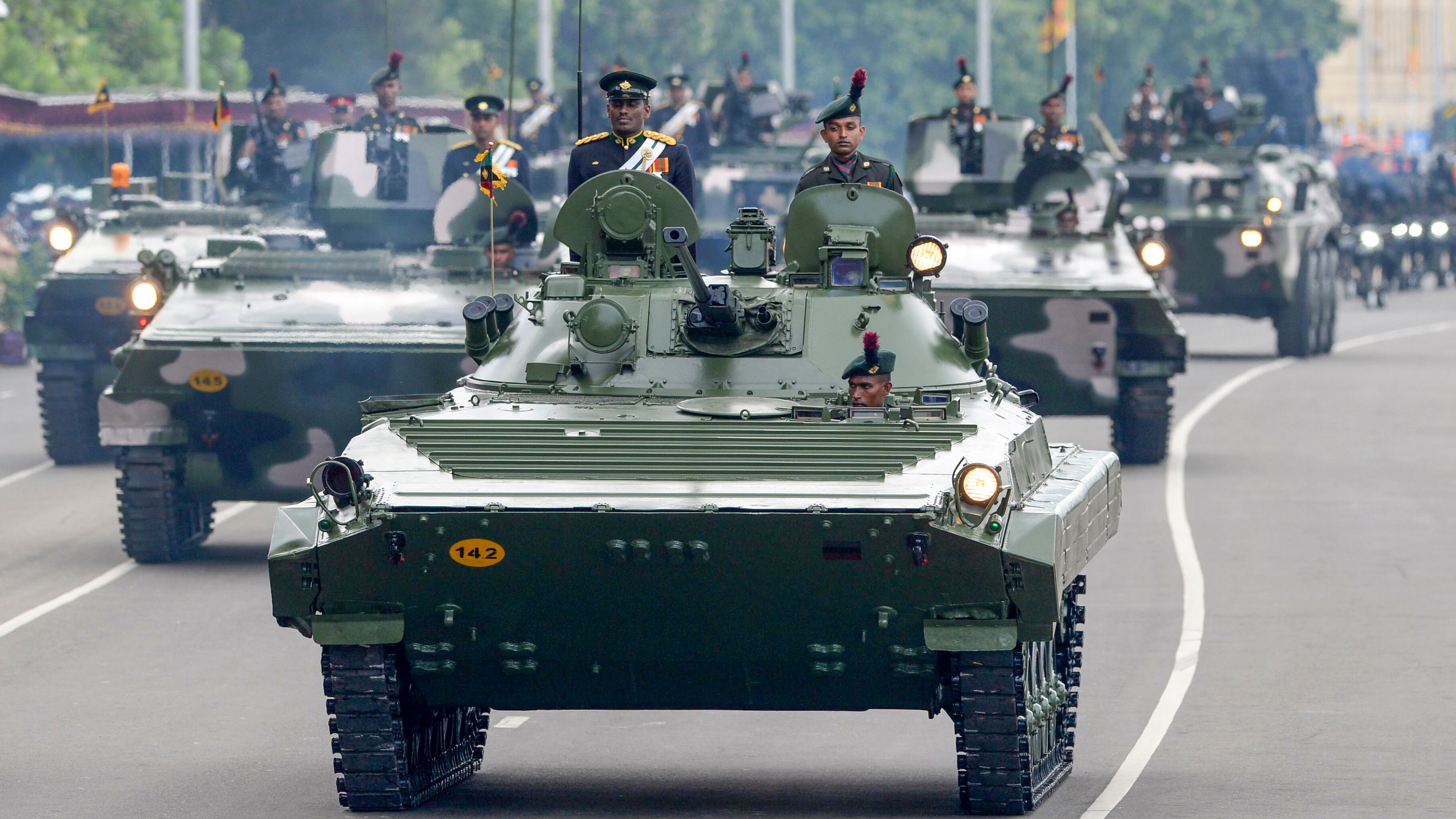 Sri Lankan Army tanks parade during the island's 71st Independence Day celebrations in Colombo on February 4, 2019. - Sri Lanka is marking the 71st anniversary of independence from Britain on February 4. (LAKRUWAN WANNIARACHCHI/AFP/Getty Images)