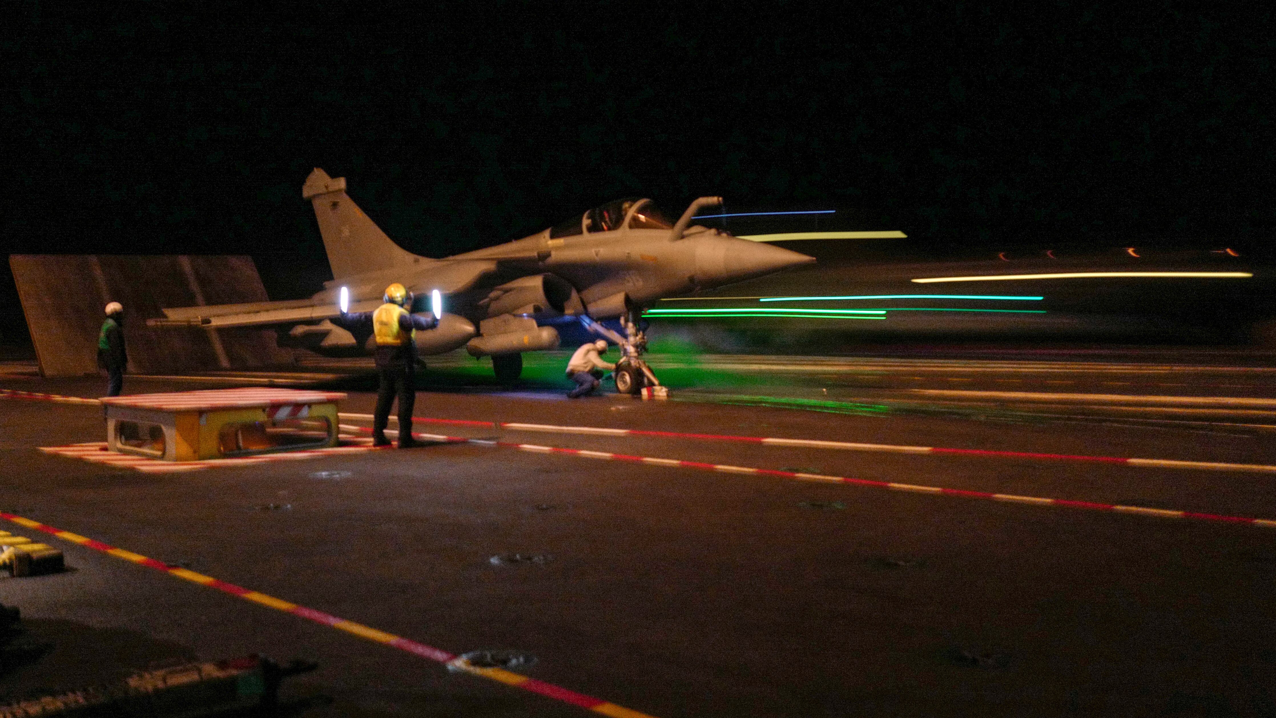 A Rafale fighter jet takes off from the carrier "Charles de Gaulle" operating on the Mediterranean sea, on February 7, 2019. (VALERY HACHE/AFP/Getty Images)
