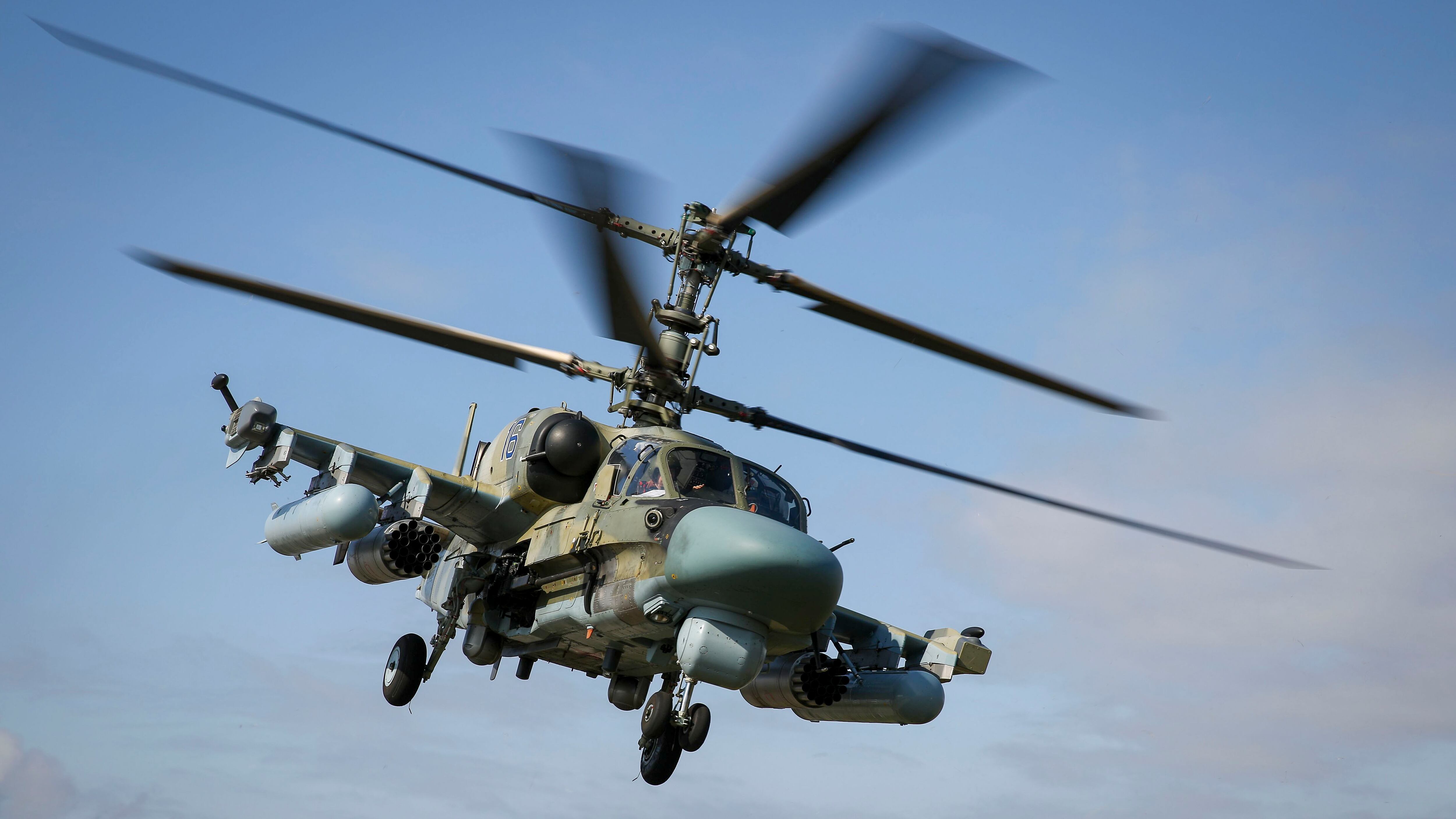 A Kamov Ka-52 Alligator military helicopter takes part in a military aviation competition in Russia's Krasnodar region on March 28, 2019. (VITALY TIMKIV/AFP/Getty Images)