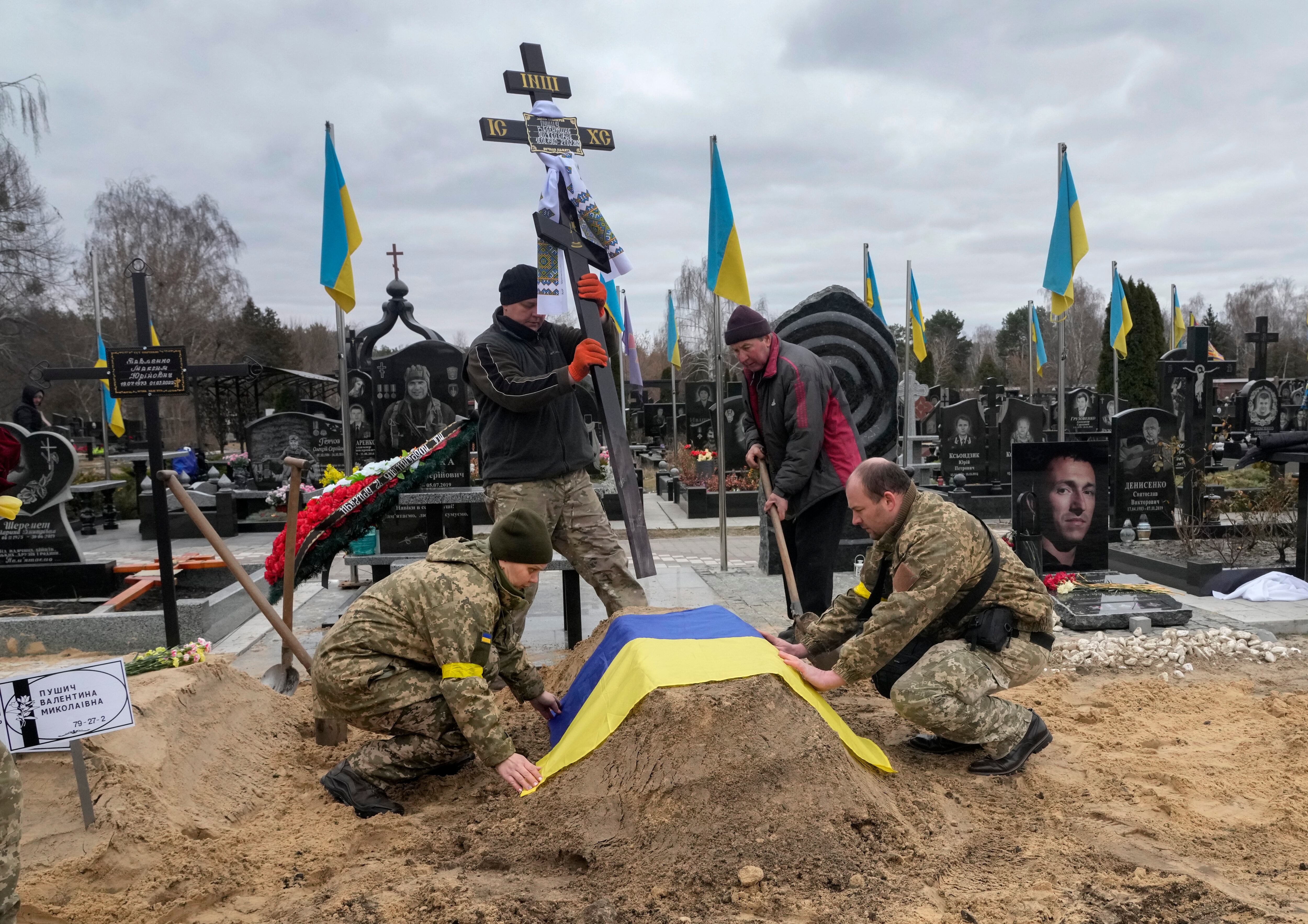 A factory and a store burn after being bombarded in Irpin, on the outskirts of Kyiv, Ukraine, Sunday, March 6, 2022. (Emilio Morenatti/AP)A factory and a store are burning after been bombarded in Irpin, in the outskirts of Kyiv, Ukraine, Sunday, March 6, 2022. (Emilio Morenatti/AP)Ukrainian servicemen help an elderly woman, in the town of Irpin, Ukraine, Sunday, March 6, 2022. (Andriy Dubchak/AP)Ukrainian servicemen carry a baby stroller after crossing the Irpin River on an improvised path under a bridge that was destroyed by a Russian airstrike, while assisting people fleeing the town of Irpin, Ukraine, Saturday, March 5, 2022. (Vadim Ghirda/AP)A Ukrainian serviceman holds a baby crossing the Irpin river on an improvised path under a bridge that was destroyed by a Russian airstrike, while assisting people fleeing the town of Irpin, Ukraine, Saturday, March 5, 2022. (Vadim Ghirda/AP)People cross on an improvised path under a bridge that was destroyed by a Russian airstrike, while fleeing the town of Irpin, Ukraine, Saturday, March 5, 2022. (Vadim Ghirda/AP)A woman holds a dog while crossing the Irpin River on an improvised path under a bridge that was destroyed by a Russian airstrike, while assisting people fleeing the town of Irpin, Ukraine, Saturday, March 5, 2022. (Vadim Ghirda/AP)People cross on an improvised path under a bridge that was destroyed by a Russian airstrike, while fleeing the town of Irpin, Ukraine, Saturday, March 5, 2022. (Vadim Ghirda/AP)Ukrainian civilians receive weapons training inside a cinema in Lviv, western Ukraine, Saturday, March 5, 2022. (Felipe Dana/AP)Ukrainian soldiers drive on an armored military vehicle in the outskirts of Kyiv, Ukraine, Saturday, March 5, 2022. (AP Photo/Emilio Morenatti)Ukrainian paramedics cover a grave with their country's flag of their colleague Valentyna Pushych, who was killed by Russian troops in a cemetery in Kyiv, Ukraine, Saturday, March 5, 2022. (Efrem Lukatsky/AP)Glass on a hospital window is shattered by shelling in Mariupol, Ukraine, Thursday, March 3, 2022. (Evgeniy Maloletka/AP)The children of medical workers warm themselves in a blanket as they wait for their relatives in a hospital in Mariupol, Ukraine, Friday, March 4, 2022. (Evgeniy Maloletka/AP)A woman traveling with others fleeing Ukraine, looks out of the window of a bus near the border crossing in Korczowa, Poland, Saturday, March 5, 2022. (Visar Kryeziu/AP)Refugees, mostly women with children, rest inside a tent after arriving at the border crossing, in Medyka, Poland on Sunday, March 6, 2022. (Visar Kryeziu/AP)Refugees, mostly women with children, rest inside a tent after arriving at the border crossing, in Medyka, Poland on Sunday, March 6, 2022. (Visar Kryeziu/AP)