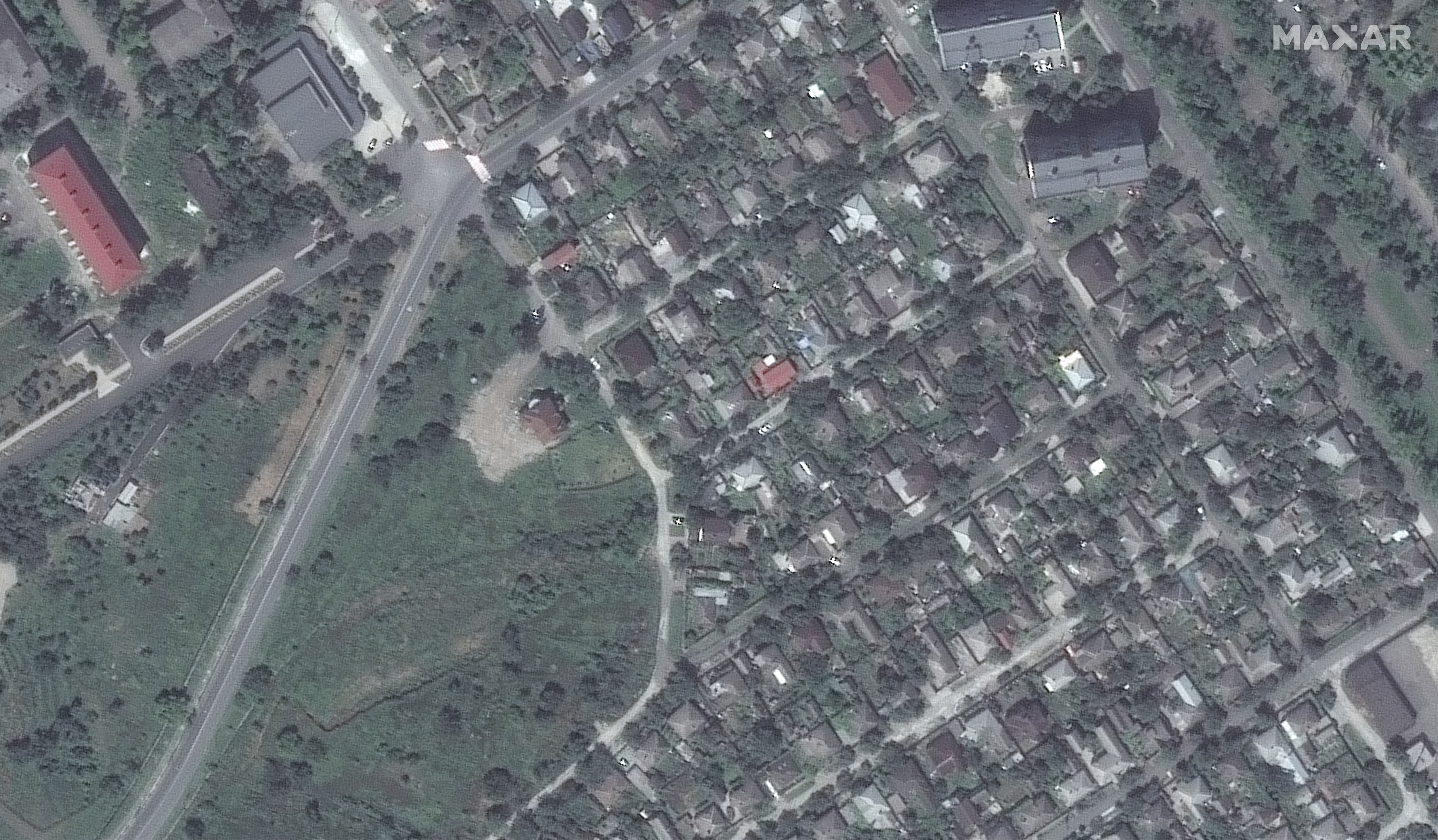 Overview shows homes and buildings in Mariupol, Ukraine, June 21, 2021, prior to the Russian invasion (Satellite image ©2022 Maxar Technologies)