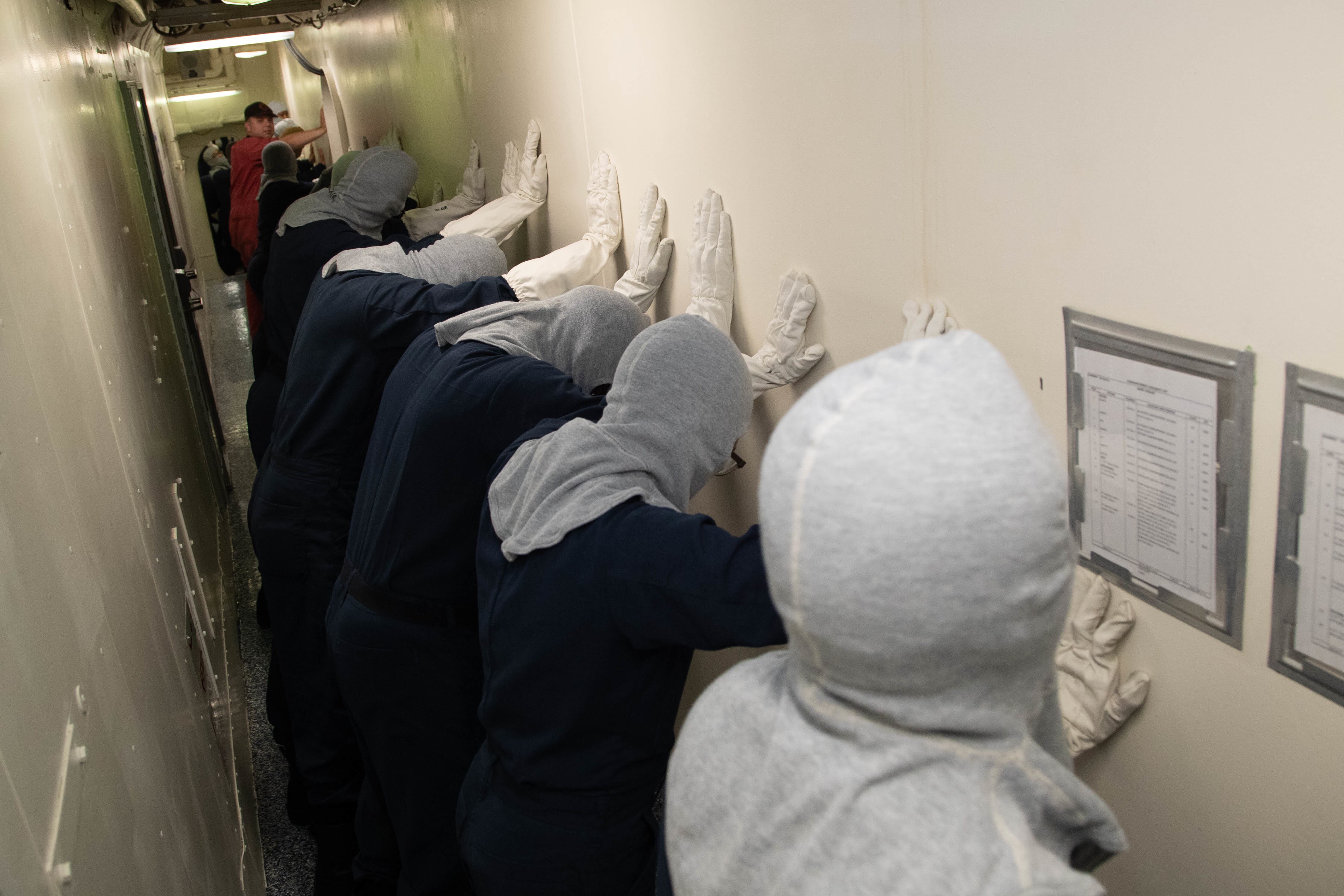 The aircraft carrier USS Gerald R. Ford (CVN 78) completes the first scheduled explosive event of Full Ship Shock Trials while underway in the Atlantic Ocean, June 18, 2021. The U.S. Navy conducts shock trials of new ship designs using live explosives to confirm that our warships can continue to meet demanding mission requirements under harsh conditions they might encounter in battle. MC3 Riley B. McDowell/US Navy.Sailors assigned to USS Gerald R. Ford (CVN 78) muster to their respective life raft stations during an abandon ship training evolution in the ship's hangar bay, June 8, 2021. Ford is underway in the Atlantic Ocean conducting Full Ship Shock Trials (FSST). The U.S. Navy conducts shock trials of new ship designs using live explosives to confirm that our warships can continue to meet demanding mission requirements under harsh conditions they might encounter in battle. MC3 Angel Thuy Jaskuloski/US Navy.Logistics Specialist 2nd Class Jinaki Boston, from Baltimore, assigned to USS Gerald R. Ford's (CVN 78) supply department, reports a simulated casualty during a general quarters drill, June 9, 2021. Ford is underway in the Atlantic Ocean conducting Full Ship Shock Trials (FSST). The U.S. Navy conducts shock trials of new ship designs using live explosives to confirm that our warships can continue to meet demanding mission requirements under harsh conditions they might encounter in battle. MC3 Brett Walker/US Navy.Sailors assigned to USS Gerald R. Ford (CVN 78) brace for shock during a general quarters drill, June 8, 2021. Ford is underway in the Atlantic Ocean conducting Full Ship Shock Trials (FSST). The U.S. Navy conducts shock trials of new ship designs using live explosives to confirm that our warships can continue to meet demanding mission requirements under harsh conditions they might encounter in battle. MC3 Angel Thuy Jaskuloski/US Navy.Sailors assigned to USS Gerald R. Ford's (CVN 78) supply department brace for shock during a general quarters drill, June 9, 2021. Ford is underway in the Atlantic Ocean conducting Full Ship Shock Trials (FSST). The U.S. Navy conducts shock trials of new ship designs using live explosives to confirm that our warships can continue to meet demanding mission requirements under harsh conditions they might encounter in battle. MC3 Brett Walker/US Navy.