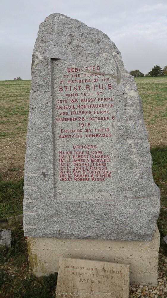 The 371st Infantry Regiment, which served with the French Command, was the most decorated Black combat unit in the U.S. Army during WW1.Part of the monument dedicated to fallen members of the 371st Division in the Champagne hillside. Holmes, 13 down. Photo credit: Jeff Gusky.The monument lies in obscurity in the French countryside. Few people know of it, just as few people known of Burton Holmes. Said Gusky: "He's an African American hero from South Carolina and icon of American history and no one even knows his name."