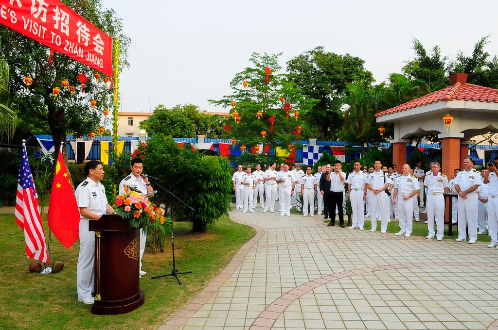 The contests — the hosts claimed a 3-1 victory at football, and the visitors dominated on the basketball court — were followed by a party on board the USS Blue Ridge, the flagship of the US Navy's 7th Fleet as it paid a rare visit to the base of China's South Sea Fleet.