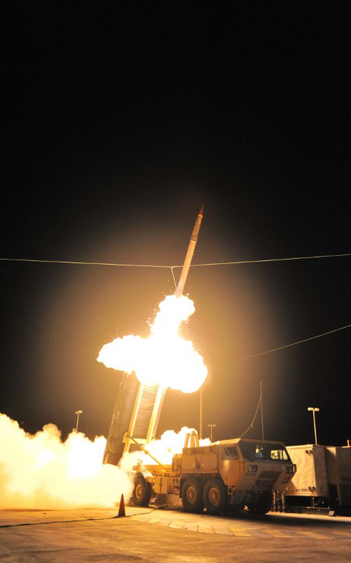 The THAAD system, in service since 2008, includes truck-mounted launchers, radars, interceptor missiles and global communications links.