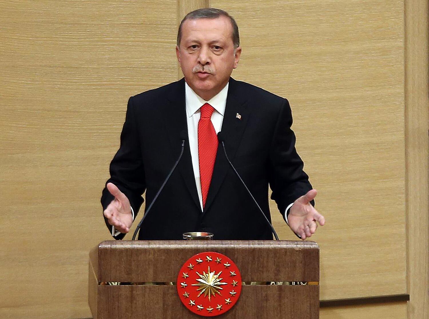 "I'm not talking about laying down arms, I'm talking about burying them. I'd like to emphasize this," Erdogan said.