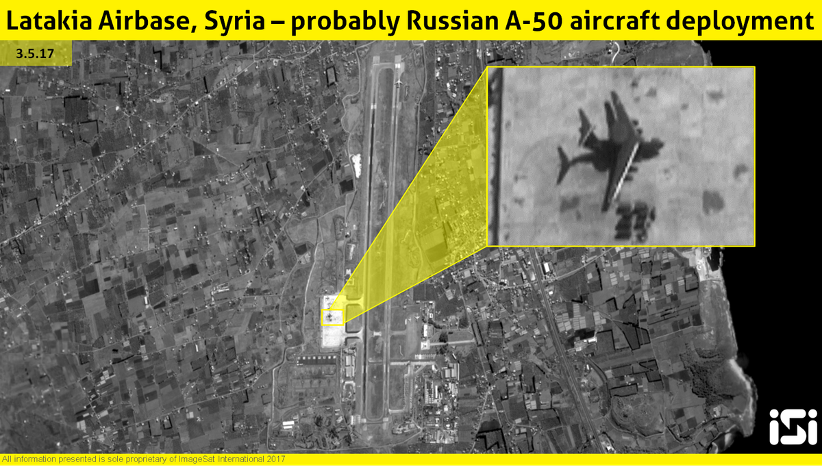 The upgraded A-50, a Russian special mission aircraft, were captured by ImageSat International deployed at the Latakia Air Base in Syria.