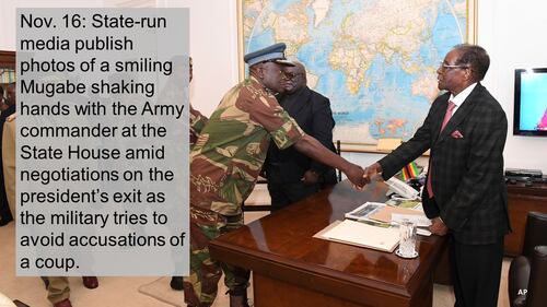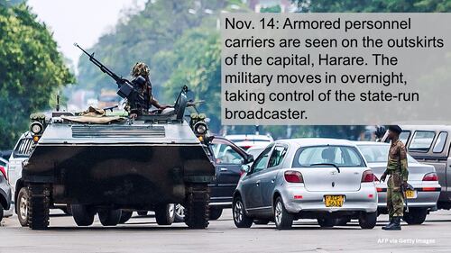 “Never should the nation be held at ransom by one person ever again, whose desire is to die in office at whatever cost to the nation,” said Mnangagwa, who has a loyal support base in the military.