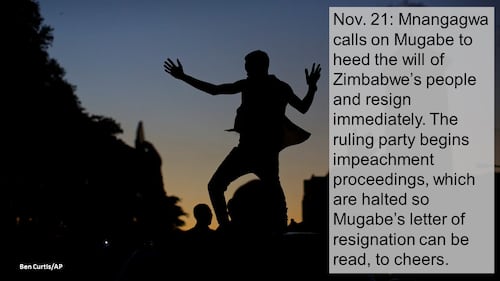 Mugabe’s resignation brought an end to impeachment proceedings brought by the ruling ZANU-PF political party after its Central Committee voted to oust the president as party leader and replace him with Mnangagwa, a former ally of Mugabe who served for decades as his enforcer with a reputation for being astute and ruthless, more feared than popular.
