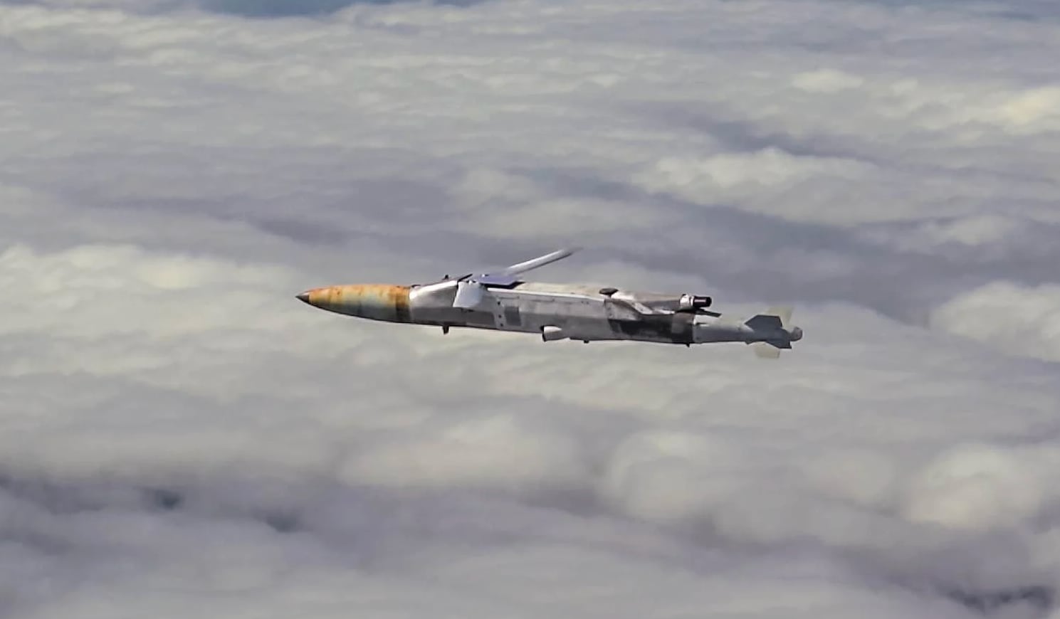 The long-range variant is an upgraded version of this guidance kit that adds a compact propulsion system, including a small Kratos-made turbojet engine and deployable wings by Ferra Engineering, that extend the bomb’s range to hundreds of miles.