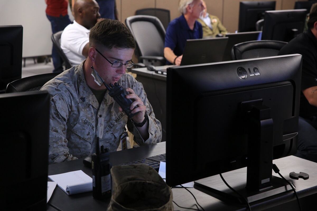 Units at Twentynine Palms, California; Yuma, Arizona; and Camp Pendleton, California, worked remotely to practice direct air support for the recent Command Post Exercise, part of the larger TALONEX 2-18 exercise at the MCAGCC.