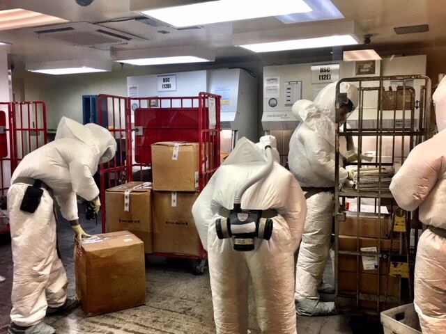Later Tuesday, the Pentagon allowed reporters to view the facility where every piece of inbound mail is inspected and screened before it is allowed to move on to its intended recipient. Inside, more than two dozen Department of Defense employees work 24 hours a day, screening the more than 500,000 pieces of mail sent to the Pentagon each year, a DoD official said on the condition of anonymity. In addition to the employees' physical screen, there are additional tests that the official would not elaborate on.